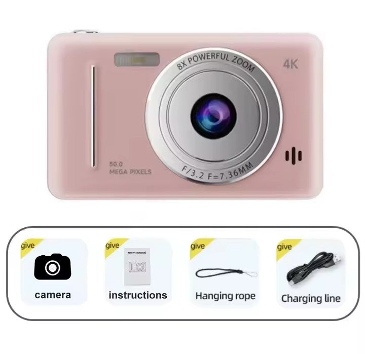 Cámara Digital 4K, cámaras de bolsillo Retro HD de 50MP, fotografía, viajes, Selfie, cámara pequeña de nivel de entrada con Zoom 8x, videocámara compacta